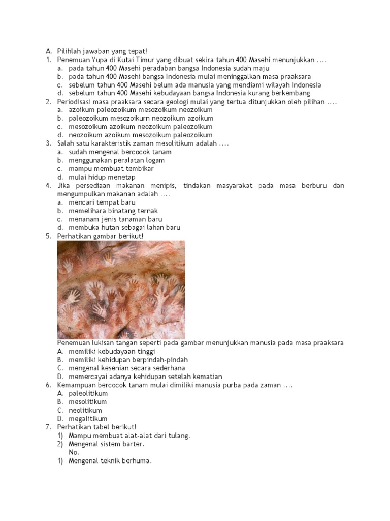 Penemuan lukisan tangan di dinding gua seperti pada gambar di atas menunjukkan bahwa manusia pada masa praaksara. 2 Lihat jawaban kesyams kesyams Prasasti SEMOGA MEMBANTU jawaban d itu salah Jeawbnya A kalo itu. Zaman prasejarah adalah suatu zaman dimana manusia belum mengenal tulisan.