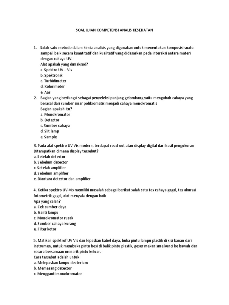 Soal Ujian Kompetensi Analis Kesehatan
