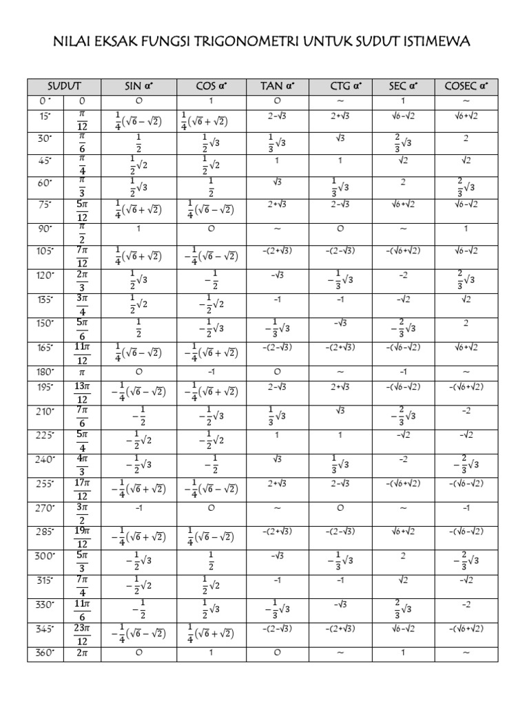 Nilai Eksak Fungsi Trigonometri Untuk Sudut Istimewa