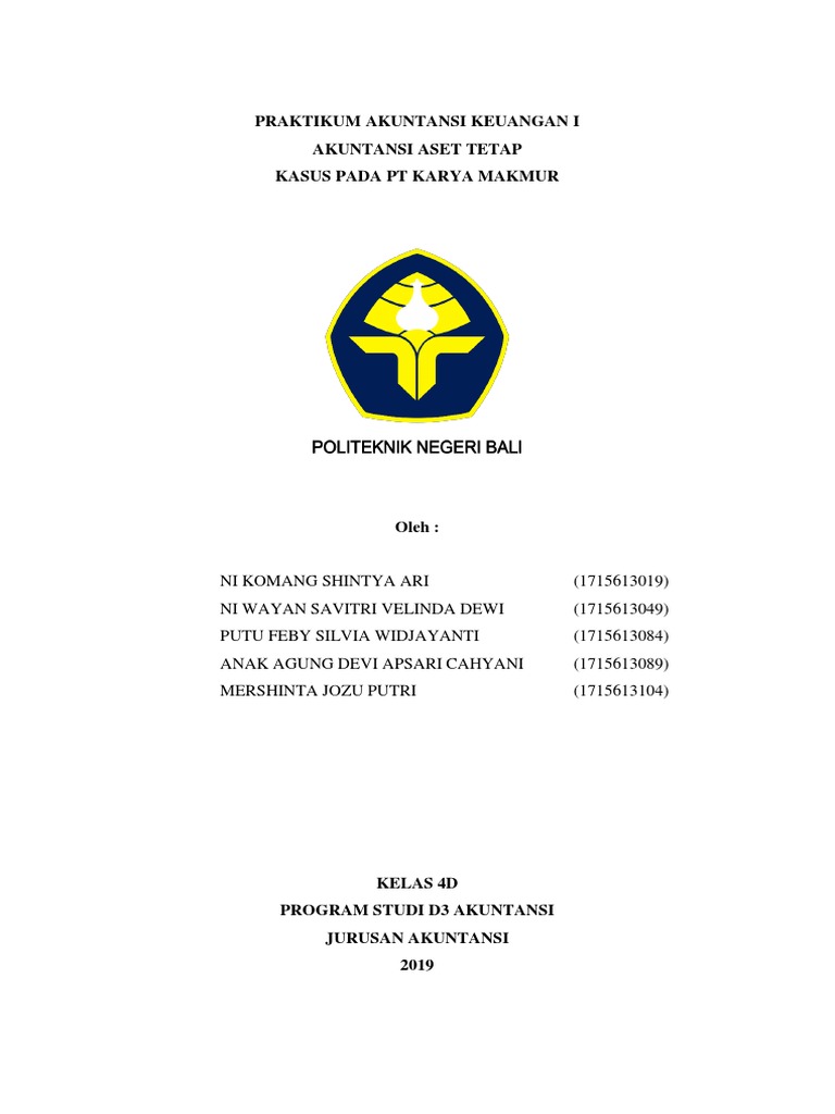 1 eksistensi 2 kelengkapan 3 keakuratan 4 klasifikasi 5 pisah batas 6 detail tie-in 7 serta hak dan kewajiban. Masa manfaat adalah periode suatu aktiva. Tugas auditing 2 kasus aktiva tetap akan menjadi pembelajaran sebelum pembuatan kertas kerja pemeriksaan.