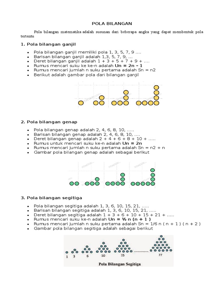 U n nn 1 dengan n bilangan asli. 2n Dimana n adalah bilangan asli. Disini juga disinggung mengenai rumus umum dari beberapa pola bi.